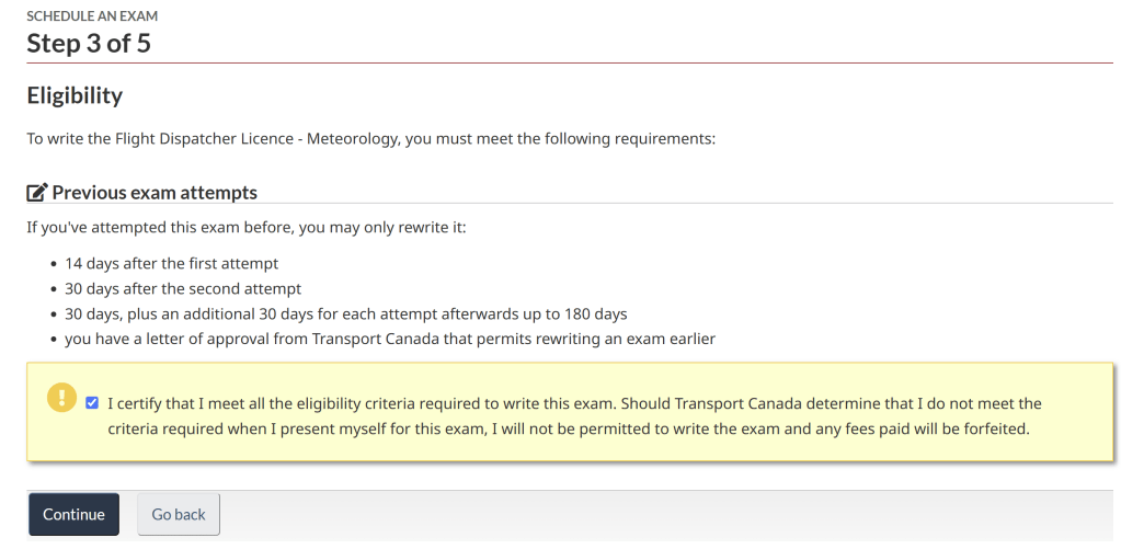 d) CONFIRM ELIGIBILITY: There are NO eligibility requirements for the Flight Dispatcher exams. Just continue past this step.