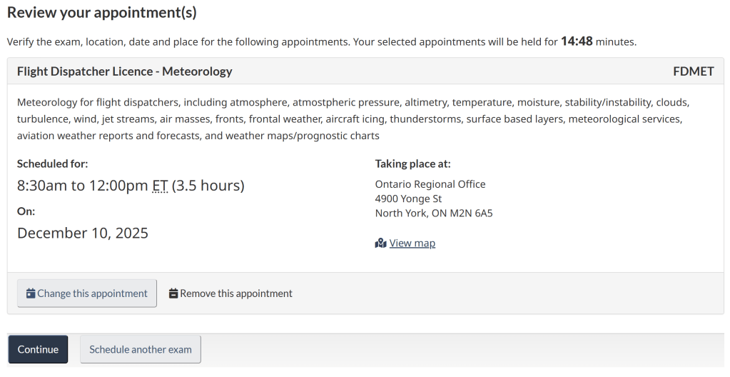 a) SELECT YOUR EXAM: Search for Flight Dispatcher and choose FDMET Exam (Flight Dispatcher – Meteorology) and FDOPS Exam (Flight Dispatcher – Operations) on separate days and times. Our recommendation is to book them within 1-2 weeks after the course, keeping them a few days apart.