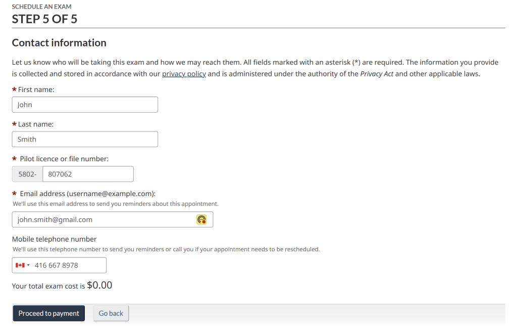 b) SELECT LOCATION: Our closest location is the Ontario Regional Office at 4900 Yonge Street. However, book wherever convenient by looking at the Regional Service Centers offering exams all across Canada: Transport Canada – Regional Service Centres