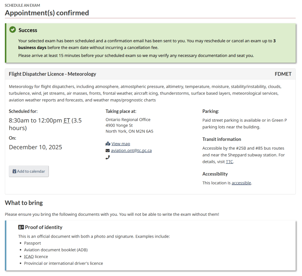Of course, if the above dates do not match your schedule or you are writing the exams in a different city, then you can book the exam appointment yourself at a Transport Canada Examination Centre.